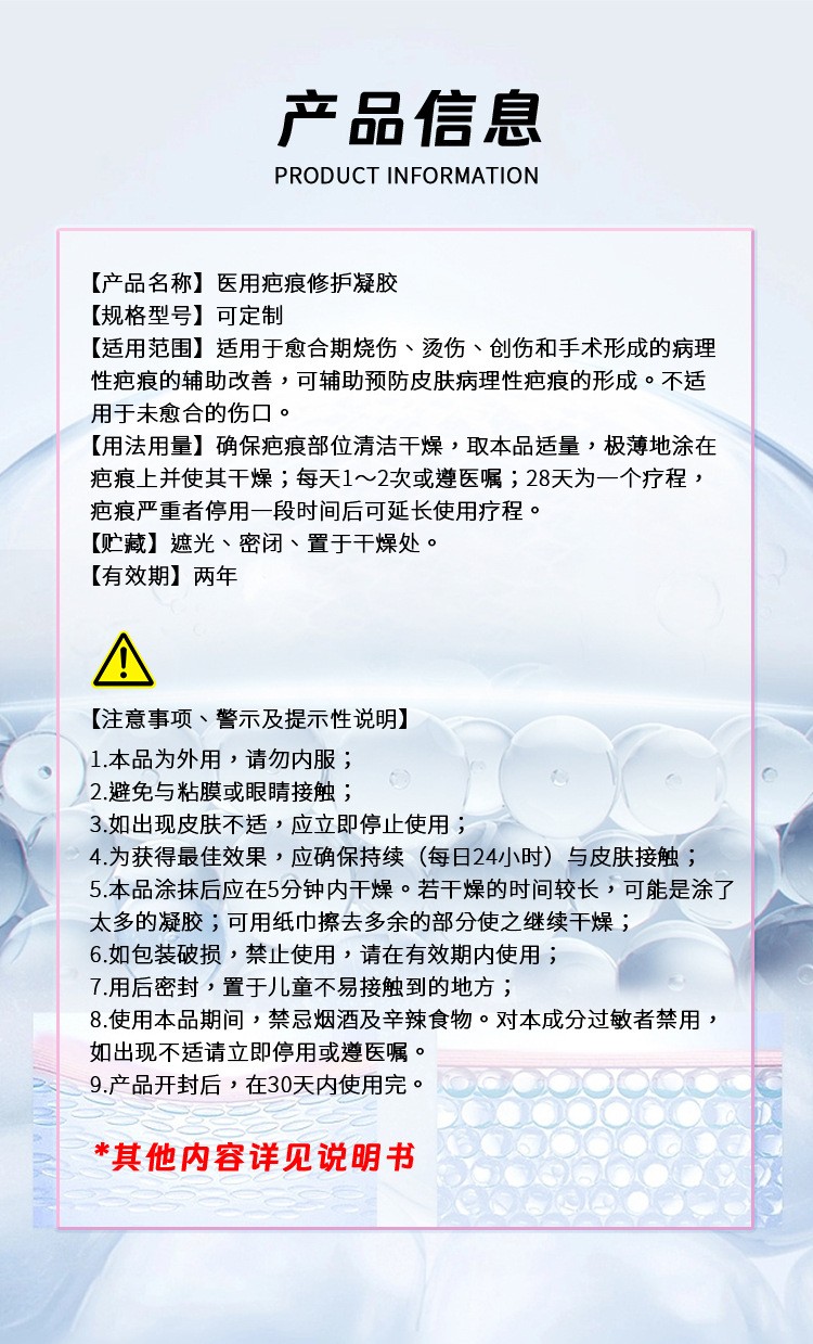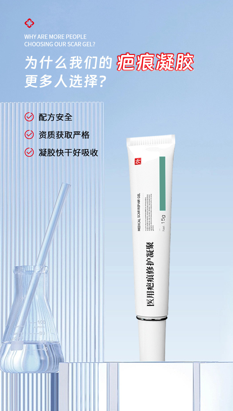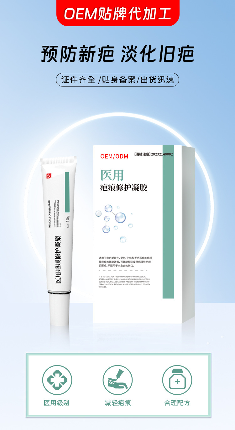 医用疤痕修护凝胶 OEM修护剖腹手术凹凸伤疤修护祛疤淡疤去印硅酮