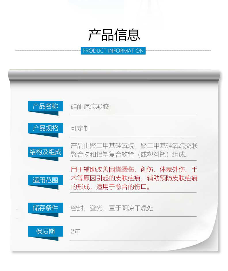医用硅酮疤痕凝胶OEM 疤痕膏除疤疤痕修复膏淡疤膏二类械字号贴牌