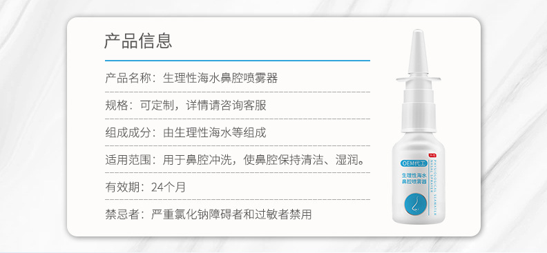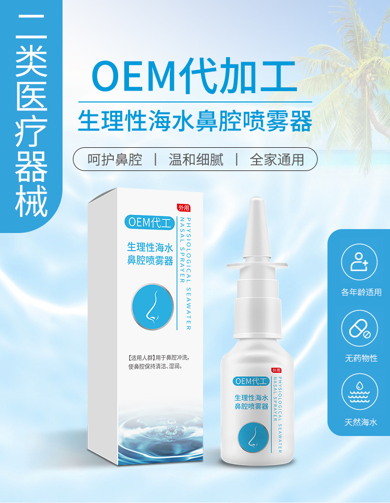 二类医疗器械生理性海水鼻腔喷雾器可定制 鼻炎护理洗鼻器OEM贴牌