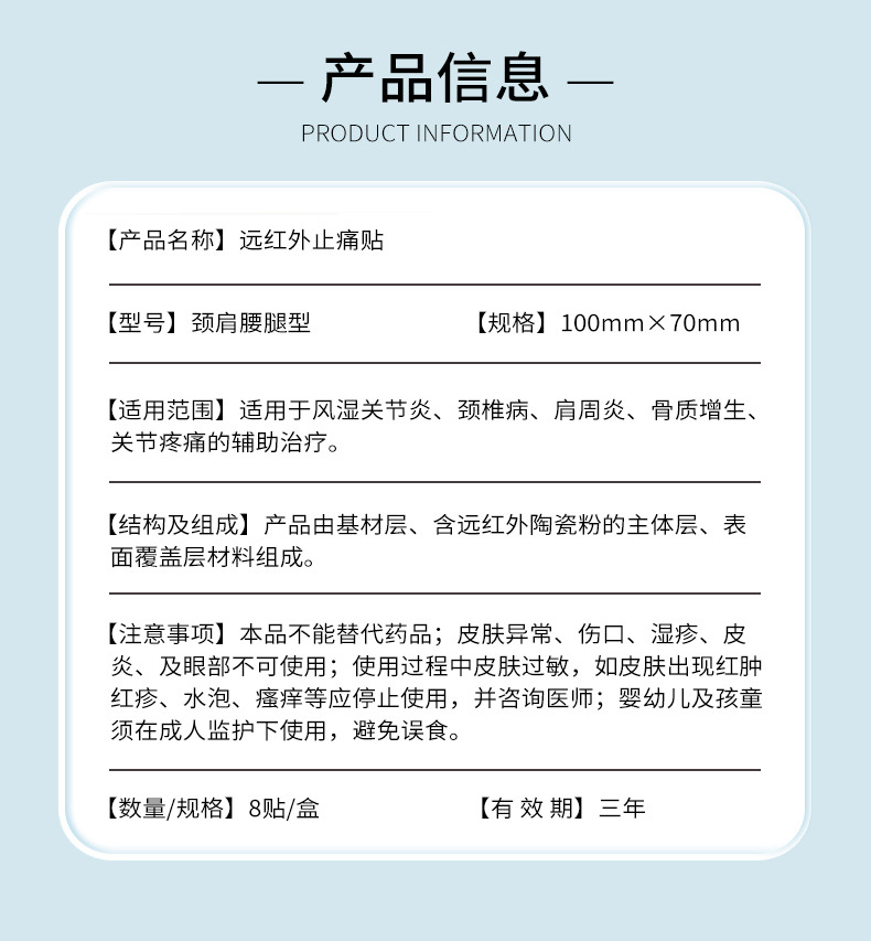 | 组成成分 | 该产品由基材层、含远红外陶瓷粉的主体层、表面覆盖层材料组成。 |