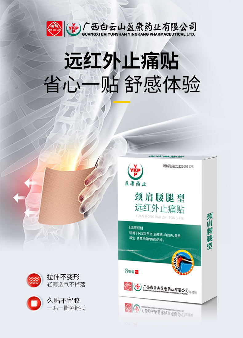 白云山盈康颈肩腰腿肩周贴风湿膏药贴止痛膏保健穴位贴筋骨黑膏药