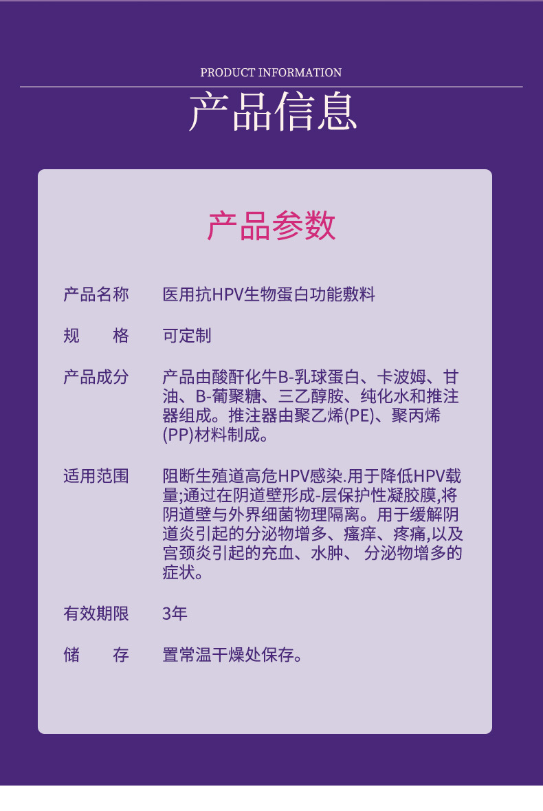 二类医疗器械医用抗HPV生物蛋白功能敷料降低HPV载量阻断HPV感染
