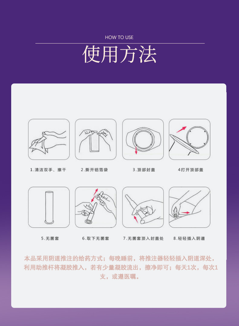 | 组成成分 | 产品由酸酐化牛β-乳球蛋白、卡波姆、甘油、β-葡聚糖、三乙醇胺、纯化水和推注器组成。推注器由聚乙烯(PE)、聚丙烯(PP)材料制成。 |