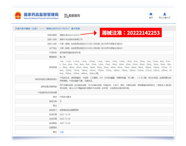 | 组成成分 | 产品由甘油、透明质酸钠、卡波姆、三乙醇胺、A91(甘油辛酸酯、辛酰羟肟酸、丙二醇)、1,2 己二醇、纯化水组成。包装容器为医用玻璃瓶。产品经辐射灭菌,无菌供应。 |