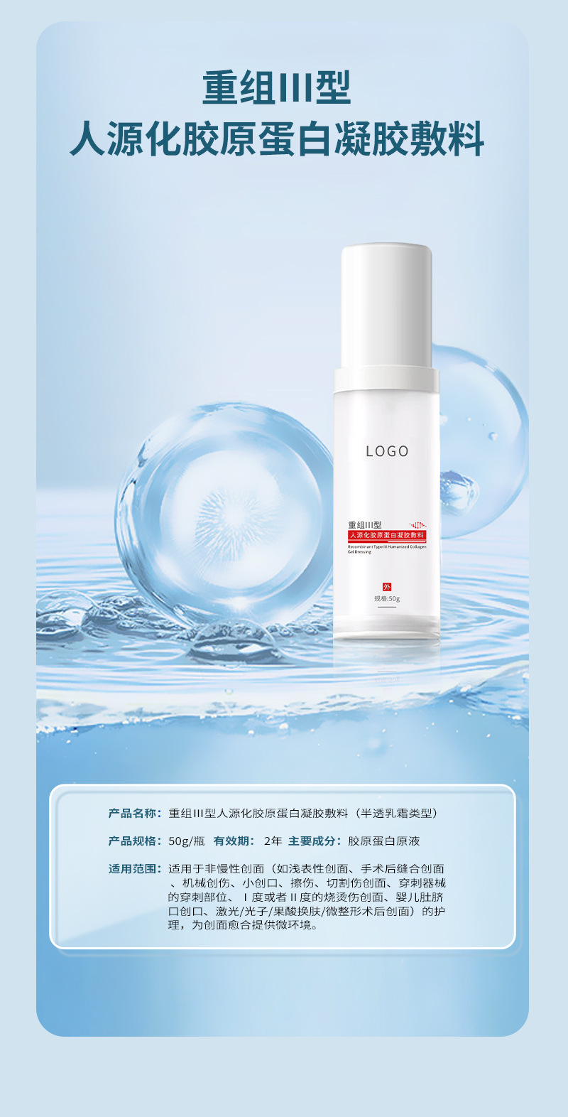 械字号医疗器械械二半透乳霜凝胶重组胶原OEM、ODM贴牌代加工