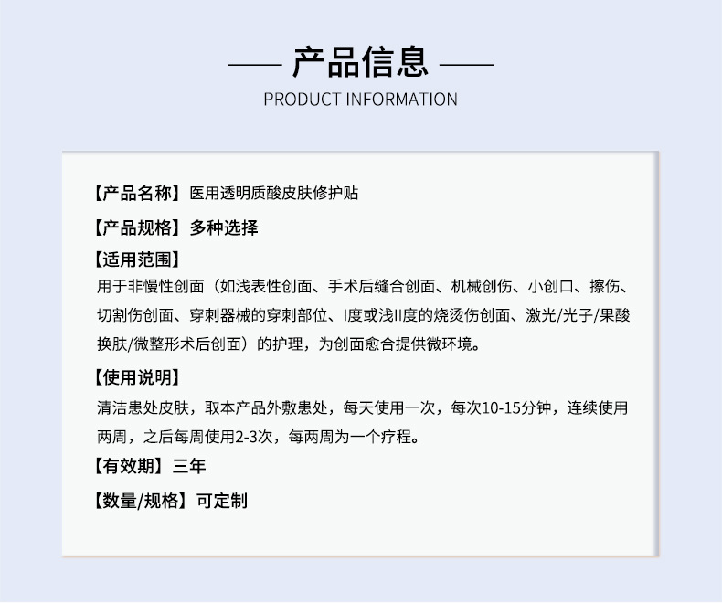 医用透明质酸皮肤修护贴 OEM皮肤修护冷敷贴医美院线修护补水面膜