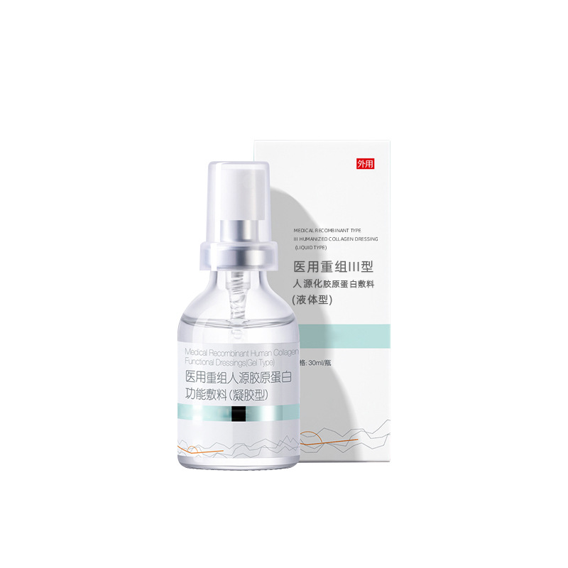 | 组成成分 | 医用重组Ⅲ型人源化胶原蛋白敷料按照产品性状不同分为A型(液体型)和B型(敷贴型),A型由蛋白溶液和聚乙烯塑料瓶或玻璃瓶或铝塑复合膜袋组成;B型由蛋白溶液和无纺布组成(可选配:聚乙烯载液包装、产品表面覆盖一层聚丙烯材质珠光纸)。蛋白溶液由重组Ⅲ型人源化胶原蛋白、卡波姆、甘油、依地酸二钠、羟苯甲酯、三乙醇胺及纯化水组成。产品经辐照灭菌,无菌供应。 |