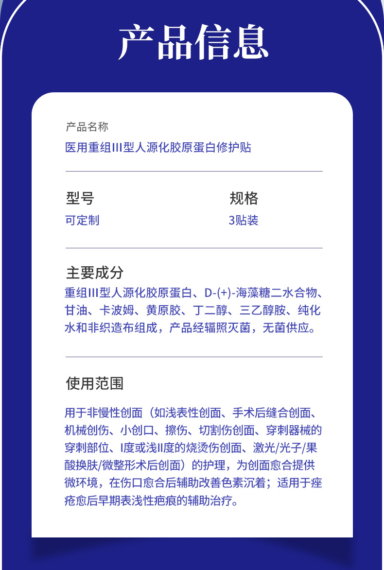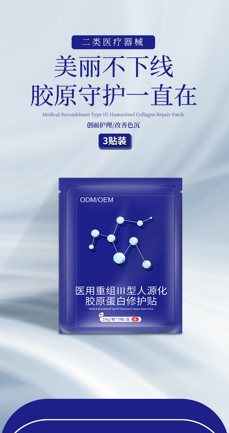 医用美容院胶原蛋白修护贴面膜 二类医疗器械重组Ⅲ型修护贴3贴装
