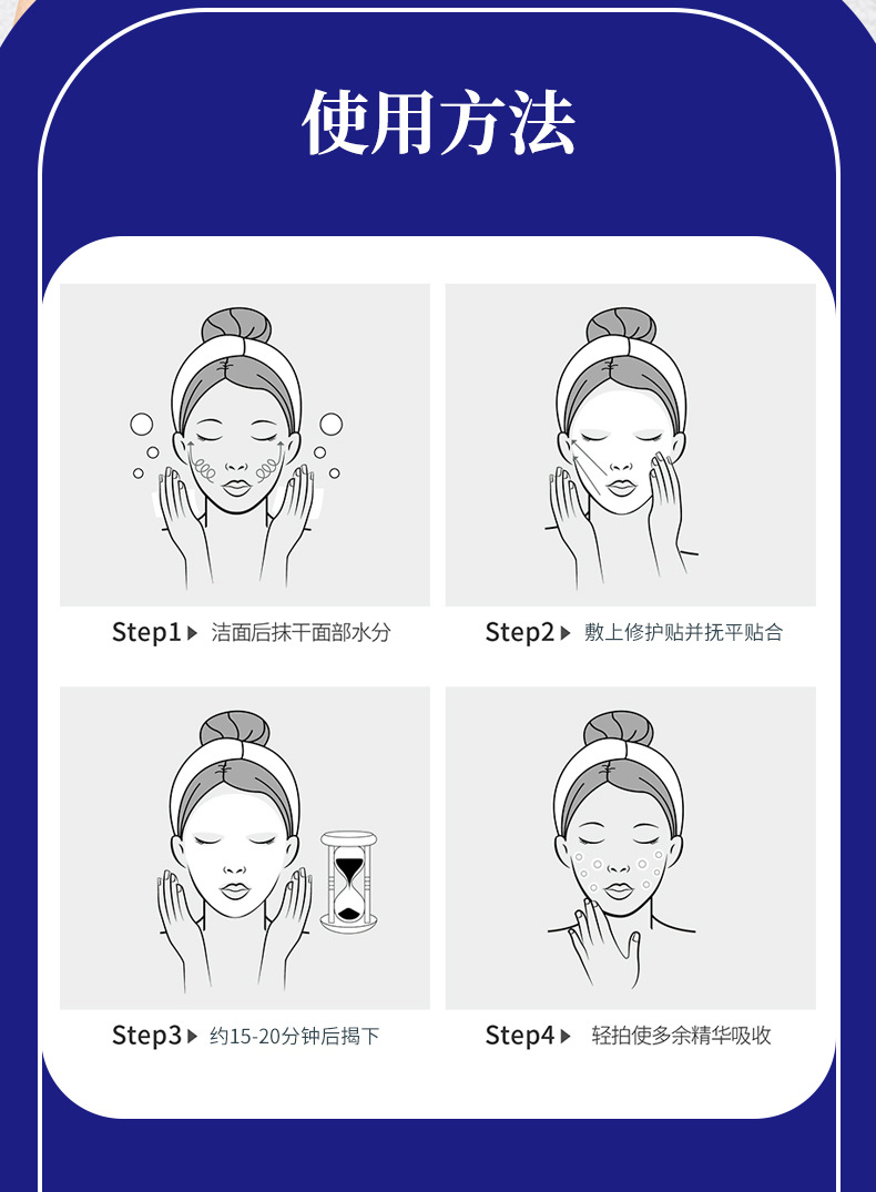 | 产品规格 | 型号:面膜型、眼贴型、敷贴型;规格:3g/贴、4g/贴、5g/贴、7g/贴、8g/贴、10g/贴、15g/贴、18g/贴、20g/贴、23g/贴、25g/贴、28g/贴、30g/贴、33g/贴、35g/贴、38g/贴、40g/贴、45g/贴、50g/贴、60g/贴。 |