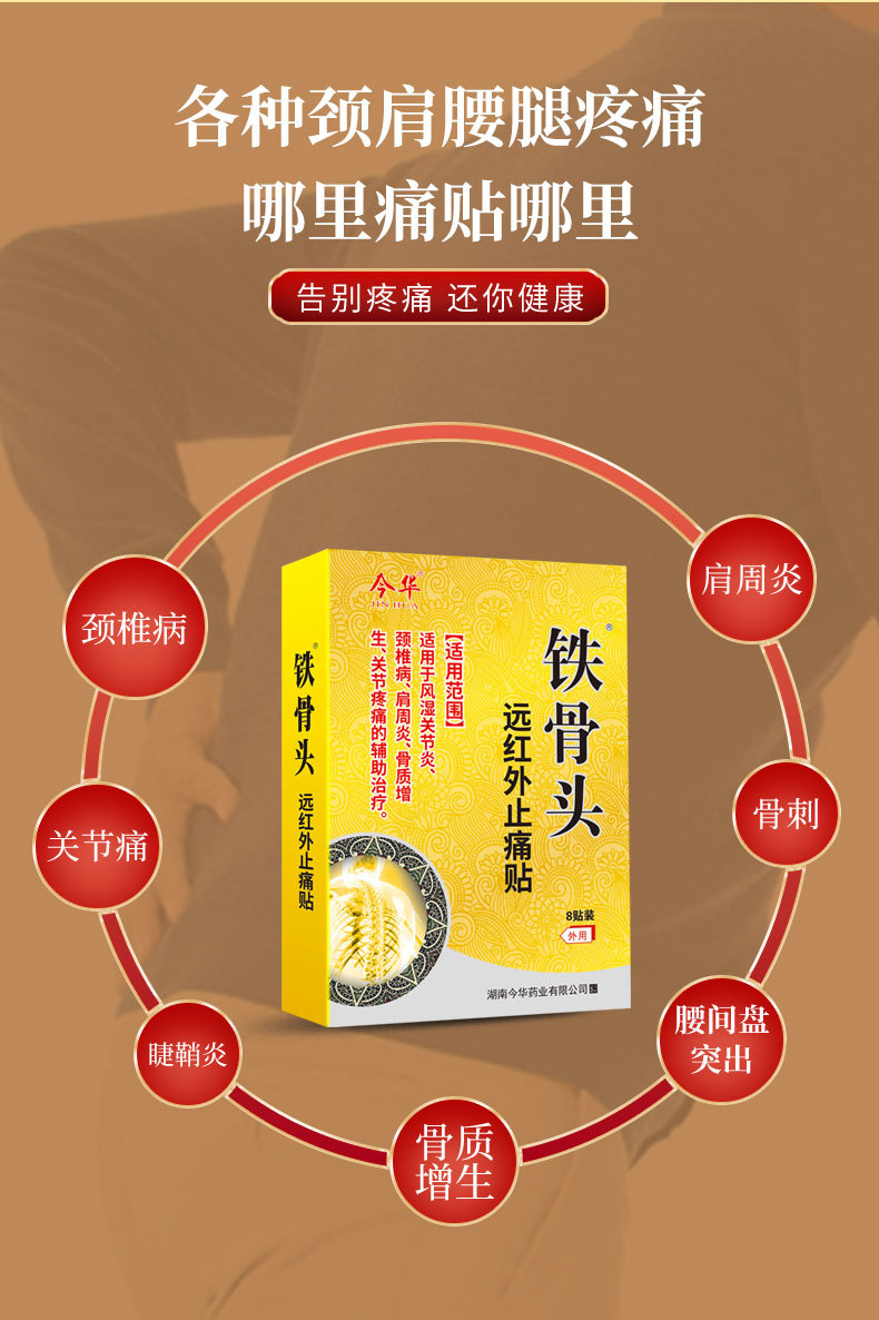 今华铁骨头关节炎黑膏贴筋骨颈椎膝凝胶盖肩周关节疼痛远红外膏贴